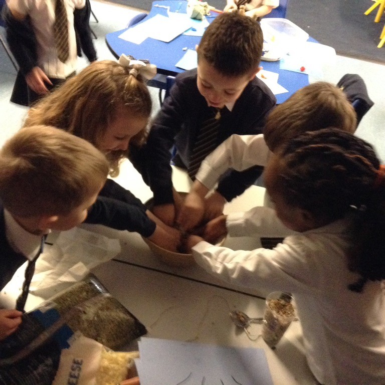 One thing that we learnt from our non-fiction book is that birds struggle to find food in the winter time as the trees are bare and also the ground can freeze, making finding worms quite tricky. We followed a set of instructions to make our very own bird feeders to help the birds in our school grounds. We used the words ‘first’, ‘then’, ‘next’ and ‘finally’ in our instructions. We all had fun getting very messy! We hope that the birds will enjoy visiting our school this winter.