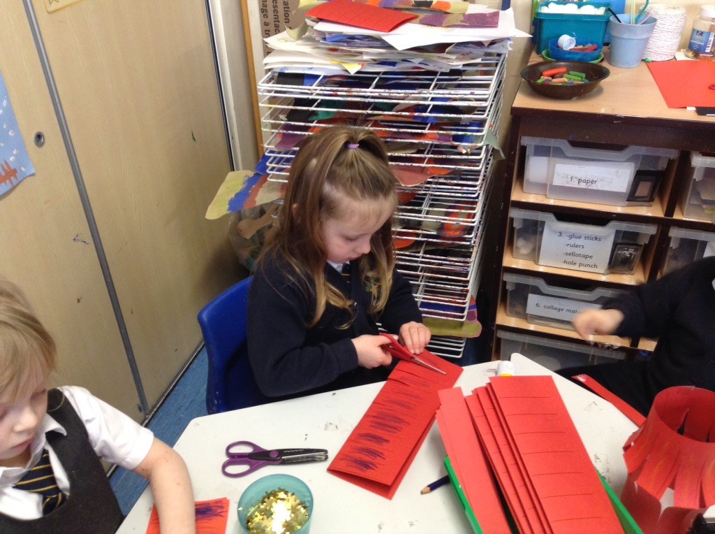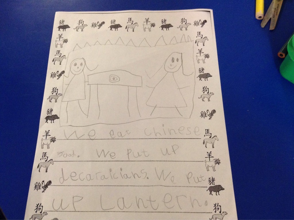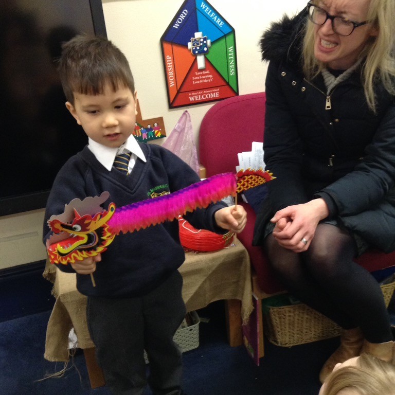 We  have been learning all about the Chinese New Year.  We have looked at photos and videos of Chinese celebrations and shared Chinese artefacts in our classroom.  We listened to the story of how the different Chinese years were named after animals and we moved around like the different creatures.  We have made pictures of Chinese dragons, made Chinese lanterns and written Chinese New Year cards.  We loved our Chinese food tasting session, talked about our preferences and used describing words.  We are excited to try some dragon dancing in our PE lesson too!
