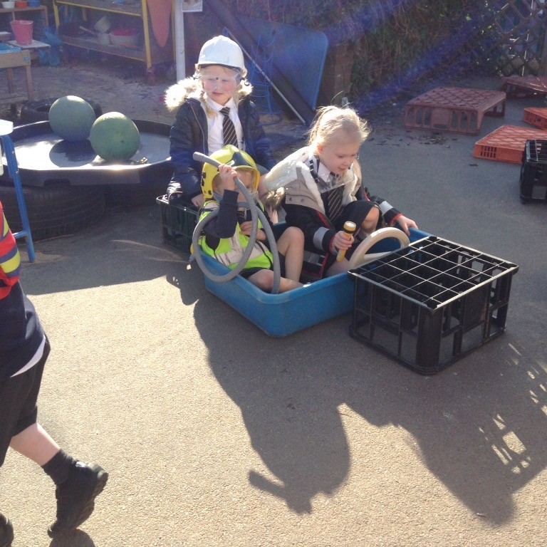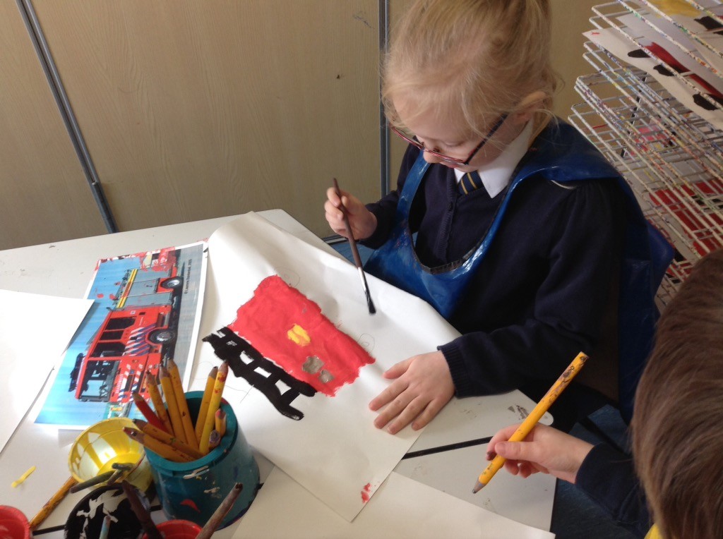 Here in EYFS our current topic is ‘People Who Help Us’.  In F2 we began by talking about all of the people who help us in different ways.  The children have taken a particular interest in firefighters  so we have been doing lots of firefighter role play outdoors and learning about firefighters in literacy.  We have been making our own non fiction books all about fire fighters too and are focusing on writing simple sentences independently using our phonics and tricky words. On the creative table we have been painting fire engines and making fire collages.