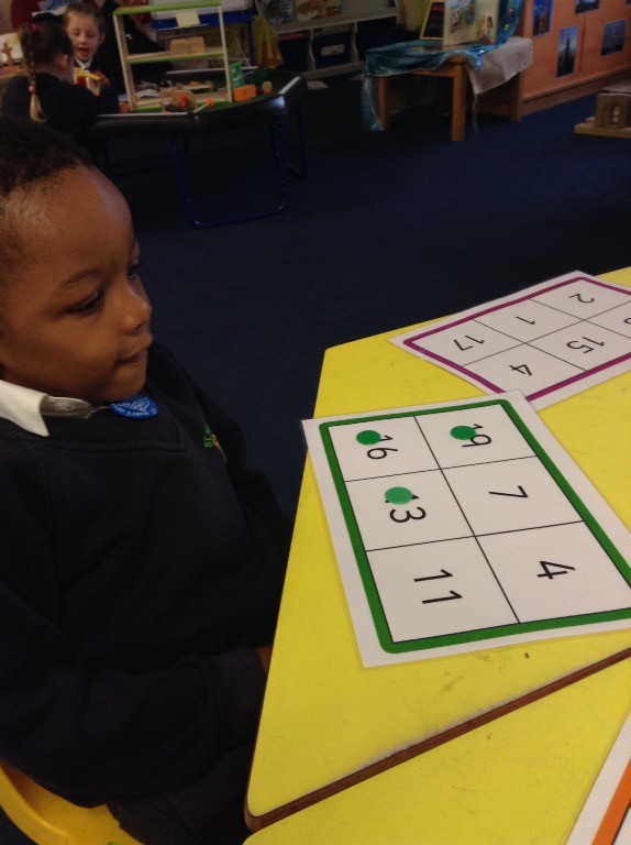 In our maths area we have been playing lots of games to help our number recognition: bingo is a firm favourite!  We are counting groups of objects and comparing the quantities.  Some of us have even started counting in twos.  We are also adding and subtracting using objects.