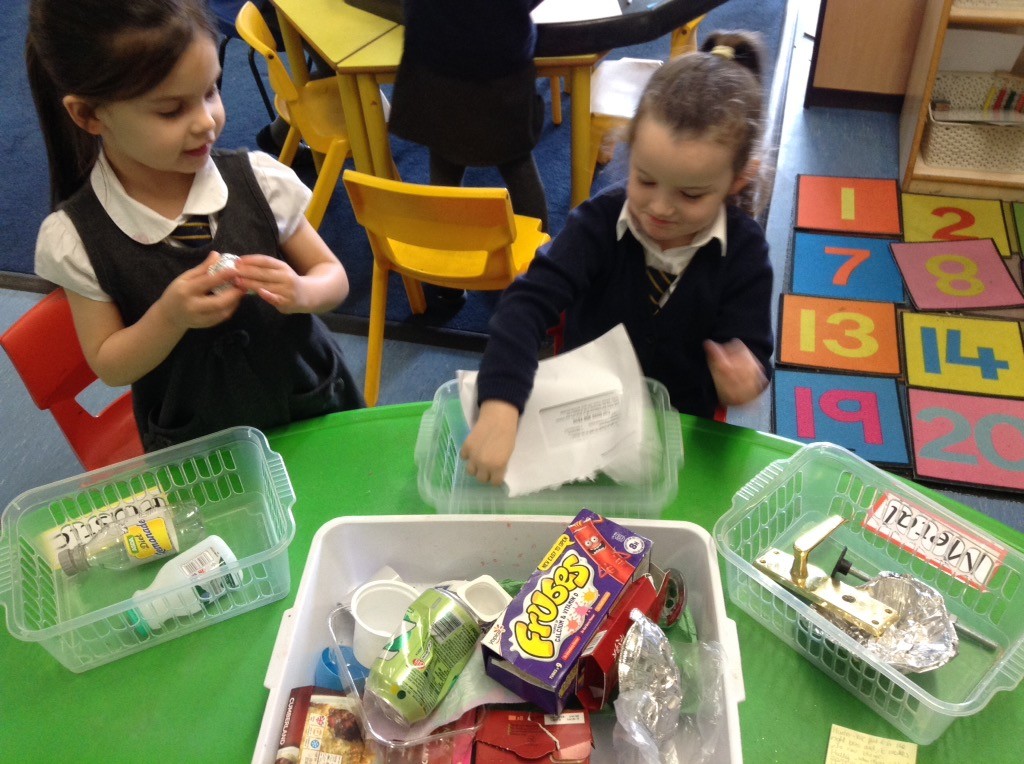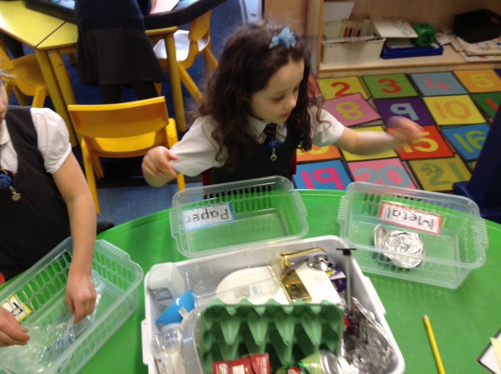 In our discovery area we are thinking all about looking after God’s wonderful world by recycling.  We are sharing books about recycling and sorting different recyclable materials.