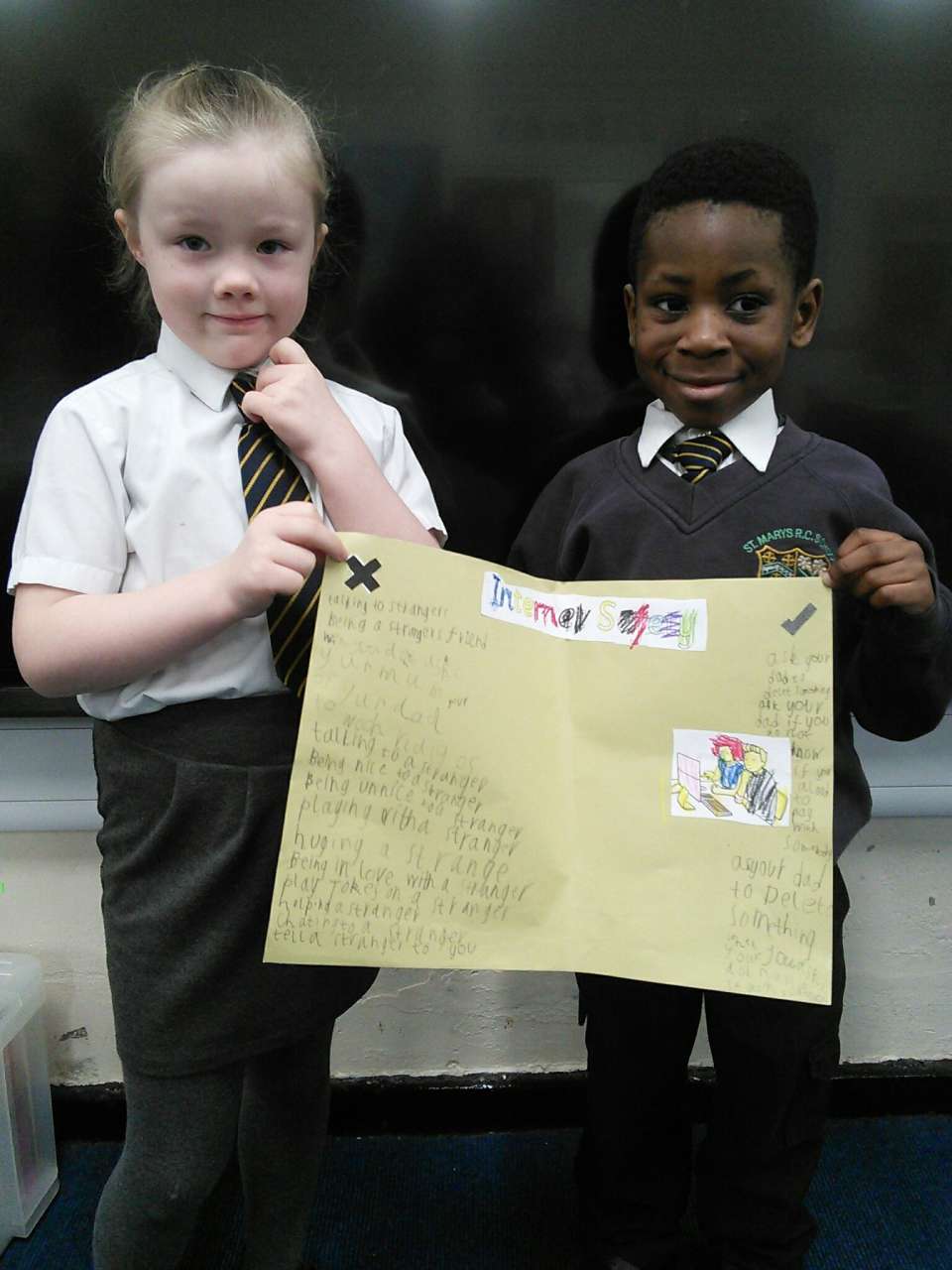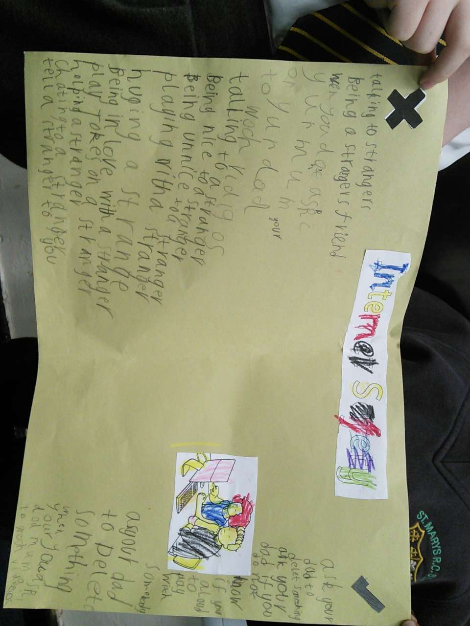 On Tuesday 5th February it was Safer Internet Day. Here at St Mary’s we took part in many different activities to promote the main focus of this years’ learning which was: Our Internet, Our Choice. The KS2 children attended an assembly in which a group of Year 6 pupils explained more about what this means and focussed on ‘consent’. They gave the children different scenarios to think about and asked them what they thought they would do if it happened to them.
